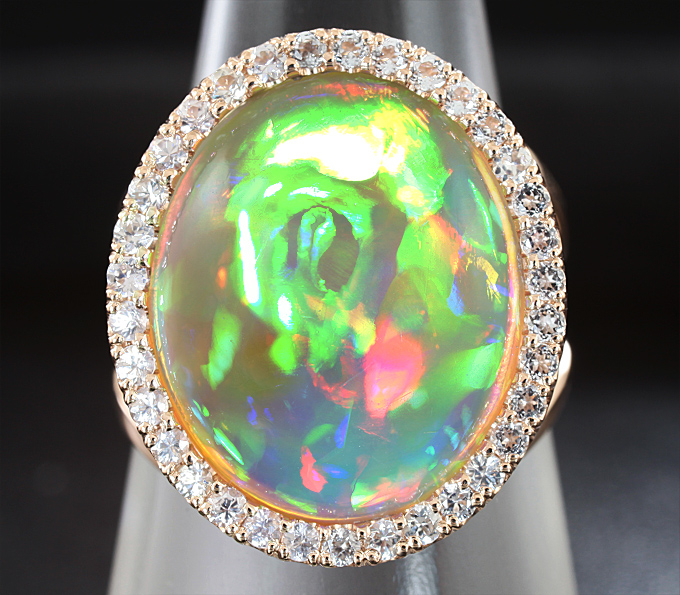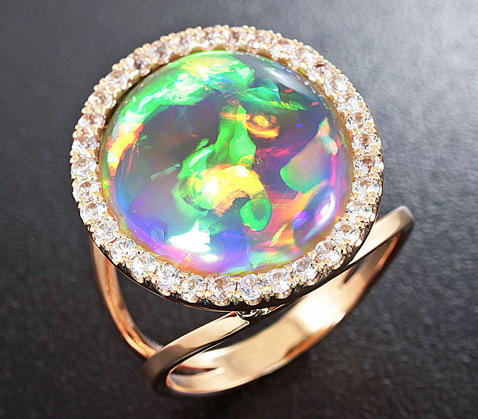 Кольцо c кристаллическим эфиопским опалом и лейкосапфирами