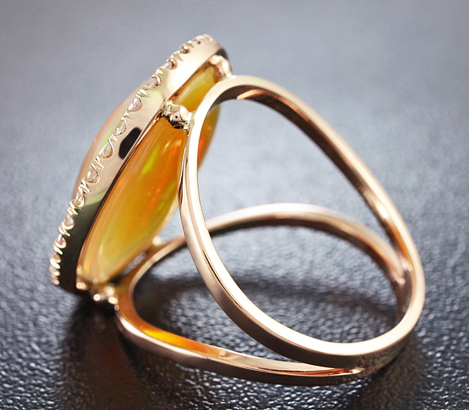 Вашему вниманию предлагается кольцо из красного золота 585 пробы c кристаллическим эфиопским опалом и лейкосапфирами! Основные цвета опалесценции: красный, желтый и зеленый. Присутствует редкая синяя опалесценция! Диаметр дополнительной инкрустации 1,5 мм. Площадка 21 х 18 мм, высота 7 мм. Вес изделия 5,6 г. Размер 17,5. Ниже приводятся ювелирные характеристики опала.