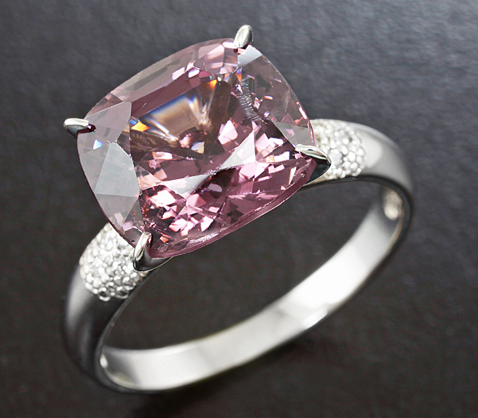 Кольцо с пурпурно-розовой шпинелью и бриллиантами