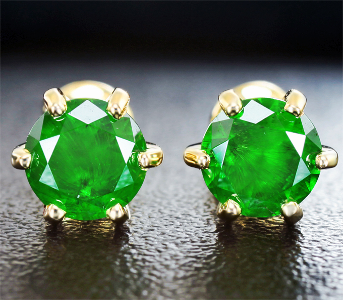 Вашему вниманию предлагаются пусеты из желтого золота 585 пробы с уральскими демантоидами гранатами! Площадка пусет 7 х 6 мм. Вес пары 2,7 г. Ниже приводятся ювелирные характеристики вставок.