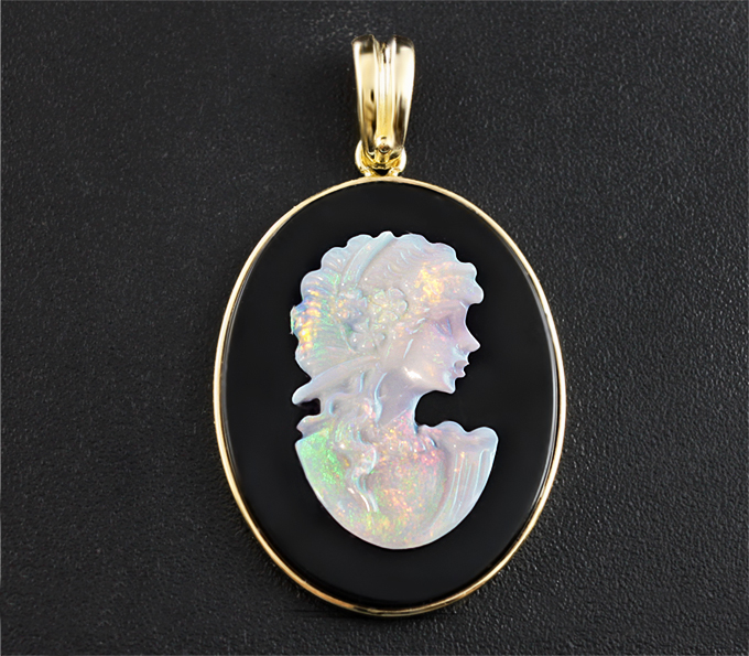 Вашему вниманию предлагается уникальный кулон из желтого золота 585 пробы с опаловой камеей массой 20 карат! Размеры вставки 29 х 23 мм. Размеры кулона с петлей 40 х 24 мм. Вес изделия 5,5 г.