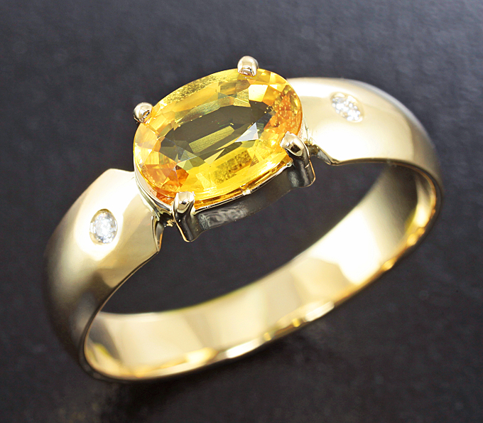 Золотое кольцо с золотисто-желтым сапфиром и бриллиантами
