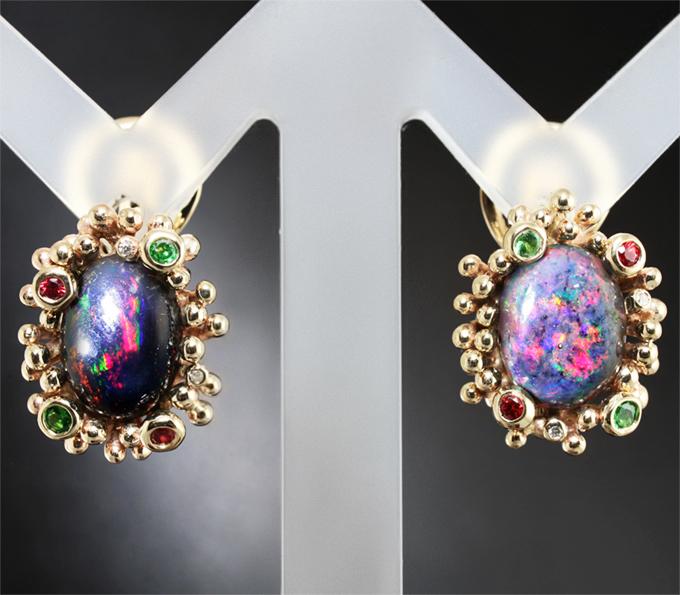 Серьги с кристаллическими черными опалами