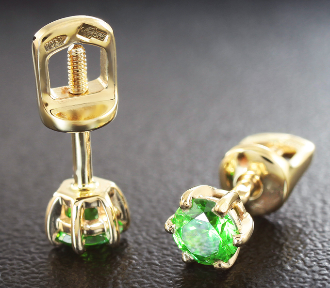 Пусеты с демантоидами
