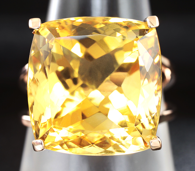 Вашему вниманию предлагается кольцо из красного золота 585 пробы с чистейшим крупным цитрином! Площадка 17,3 х 17,3 мм, высота 14 мм. Вес изделия 9,9 г. Размер 20. Ниже приводятся ювелирные характеристики вставки.