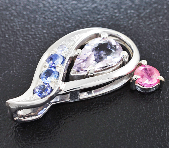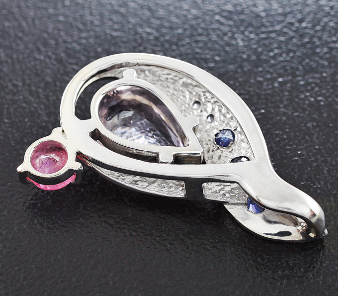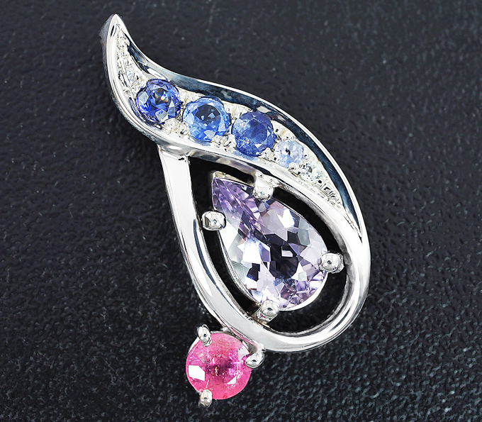 Кулон с фиолетовым бериллом, пеццоттаитом, бенитоитом, танзанитами и лейкосапфиром