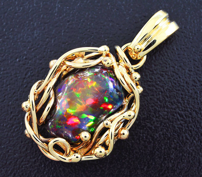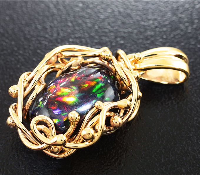 Вашему вниманию предлагается кулон из желтого золота 585 пробы с кристаллическим черным опалом! Основные цвета опалесценции: красный, желтый и зеленый. Размеры кулона с петлей 29 х 16 мм. Вес изделия 3,8 г. Ниже приводятся ювелирные характеристики.