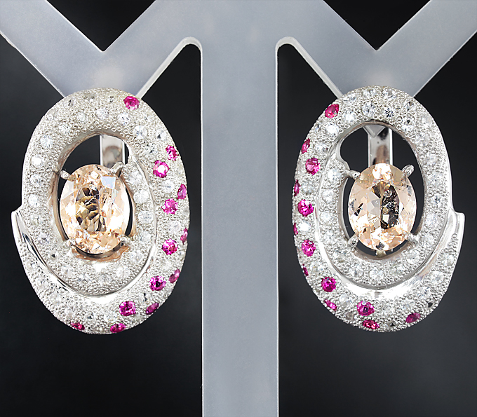 Вашему вниманию предлагаются серьги из стерлингового серебра (925 проба) с морганитами массой 2,94 карат, рубинами и лейкосапфирами! Размеры морганитов 9 х 7 мм, диаметр дополнительной инкрустации 1,5 мм и 1,8 мм. Площадка серег 26 х 18 мм. Вес пары 9,29 г.