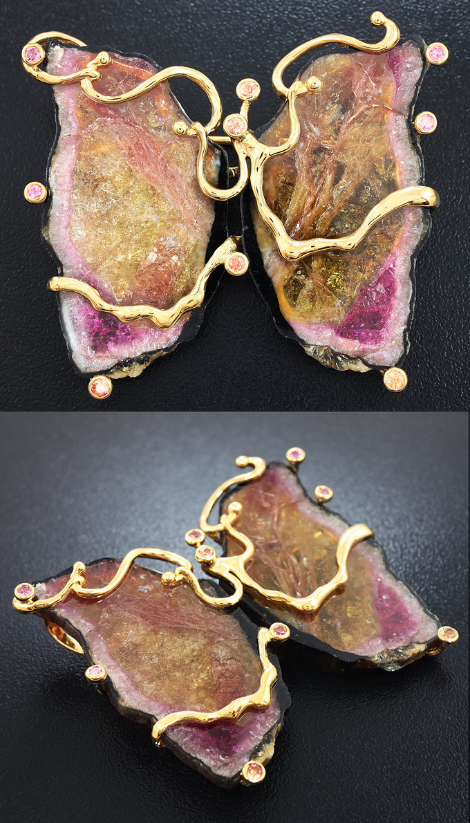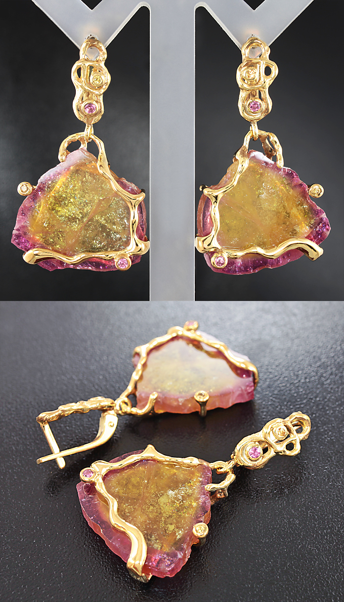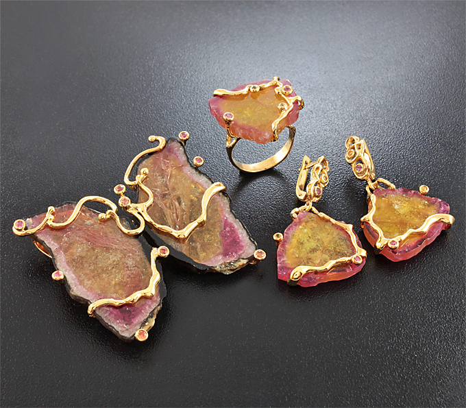 Комплект со слайсами арбузных турмалинов и ограненными турмалинами
