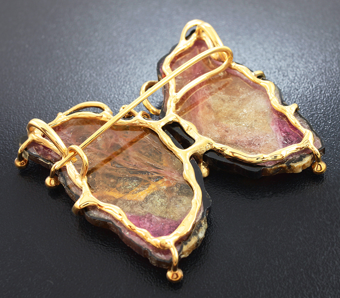 Вашему вниманию предлагается комплект (кольцо + серьги + +брошь/кулон) из стерлингового серебра (925 проба) со слайсами арбузных турмалинов и ограненными турмалинами! Изделия позолочены. Размеры вставок от 1,5 мм до 43 х 24 мм. Вес комплекта 45,9 г.