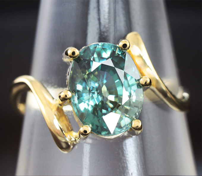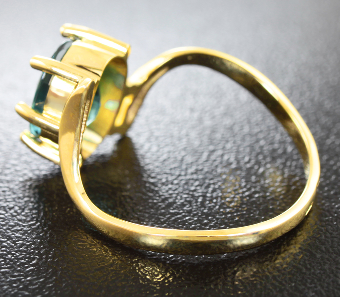 Вашему вниманию предлагается кольцо из желтого золота 585 пробы с цирконом цвета морской волны! Площадка 11 х 9 мм, высота 6 мм. Вес изделия 2,9 г Размер 17,75. Ниже приводятся ювелирные характеристики вставки.