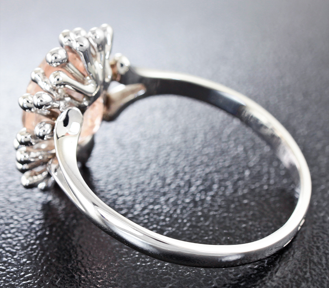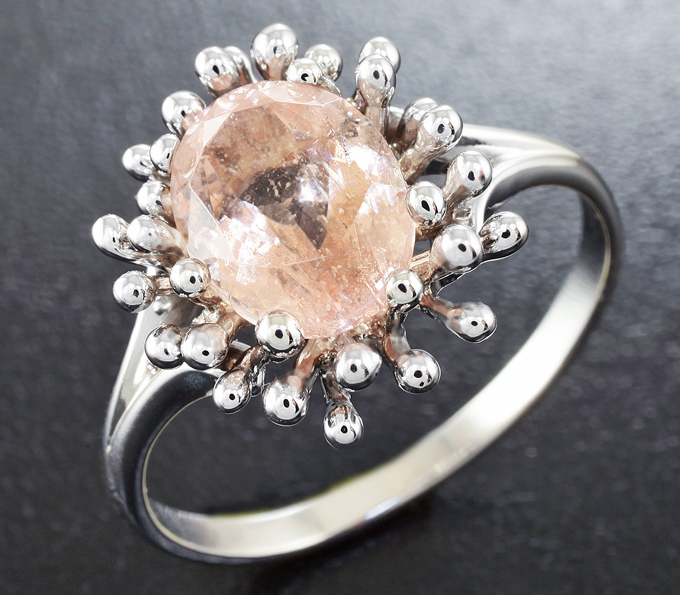 Вашему вниманию предлагается кольцо из белого золота 585 пробы с морганитом! Площадка 16 х 14 мм, высота 6 мм. Вес изделия 5 г. Размер 18,75. Ниже приводятся ювелирные характеристики.