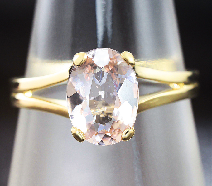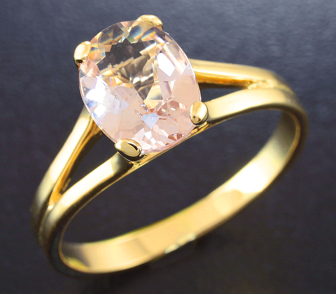 Вашему вниманию предлагается кольцо из желтого золота 585 пробы с морганитом! Площадка 9,2 х 6,9 мм, высота 7 мм. Вес изделия 2,74 г. Размер 18,5. Ниже приводятся ювелирные характеристики вставки.