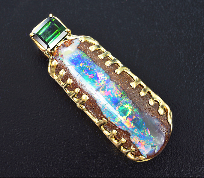 Кулон с роскошным австралийским болдер опалом и турмалином