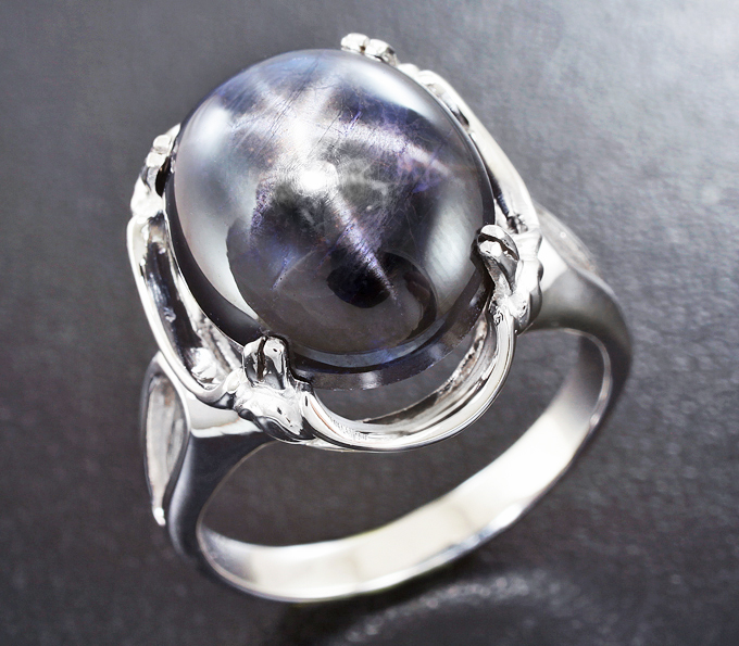 Вашему вниманию предлагается кольцо из белого золота 585 пробы со звездчатым сапфиром! Площадка 18 х 16 мм, высота 11 мм. Вес изделия 8,26 г. Размер 18,75. Ниже приводятся ювелирные характеристики вставки.