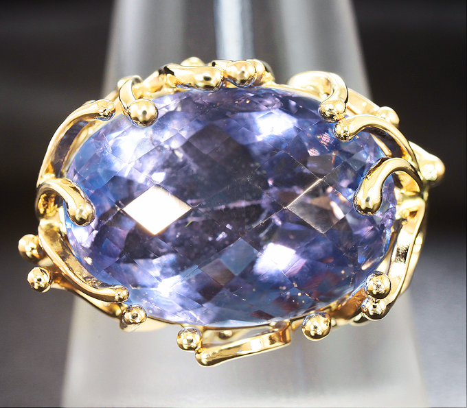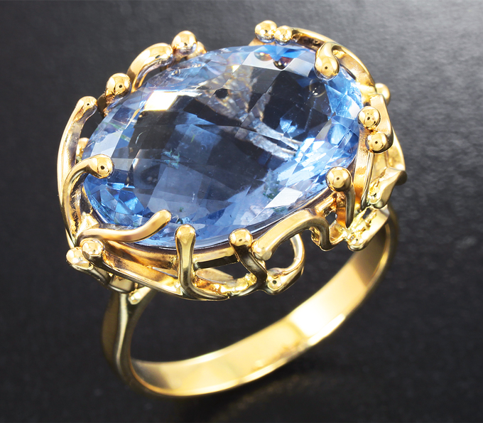 Вашему вниманию предлагается кольцо из желтого золота 585 пробы с флюоритом! При смене освещения камень меняет цвет с синего на пурпурный. Площадка 24 х 17 мм, высота 12 мм. Вес изделия 9,9 г. Размер 20. Ниже приводятся ювелирные характеристики вставки.