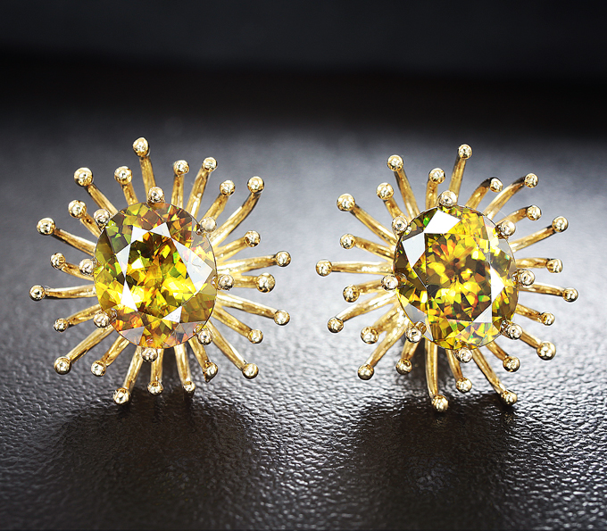 Вашему вниманию предлагаются пусеты из желтого золота 750 пробы с золотистыми сфенами! Площадка пусет 17 х 16 мм. Вес пары 7,5 г. Ниже приводятся ювелирные характеристики вставок.