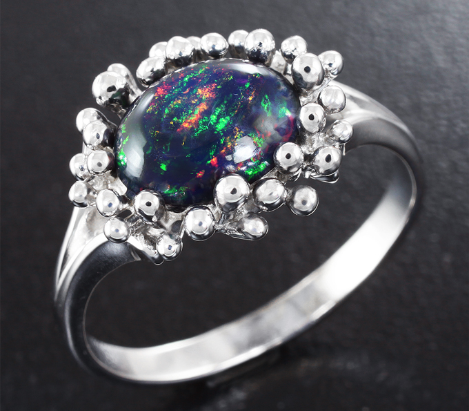Вашему вниманию предлагается кольцо из стерлингового серебра (925 проба) c кристаллическим черным опалом! Основные цвета опалесценции: красный, желтый и зеленый. Площадка 14 х 12 мм, высота 4 мм. Вес изделия 2,8 г. Размер 18. Ниже приводятся ювелирные характеристики вставки.