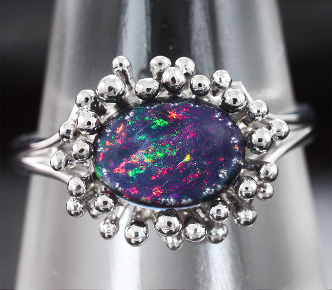 Кольцо c кристаллическим черным опалом