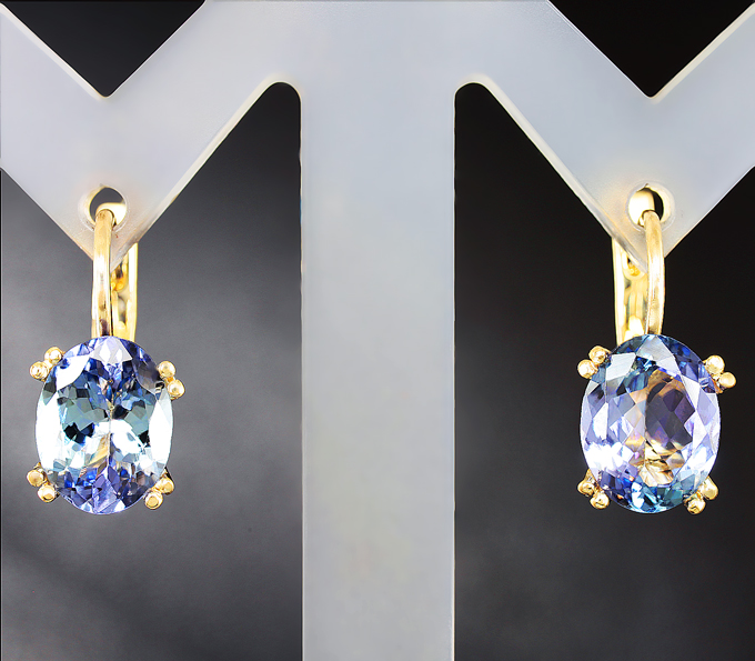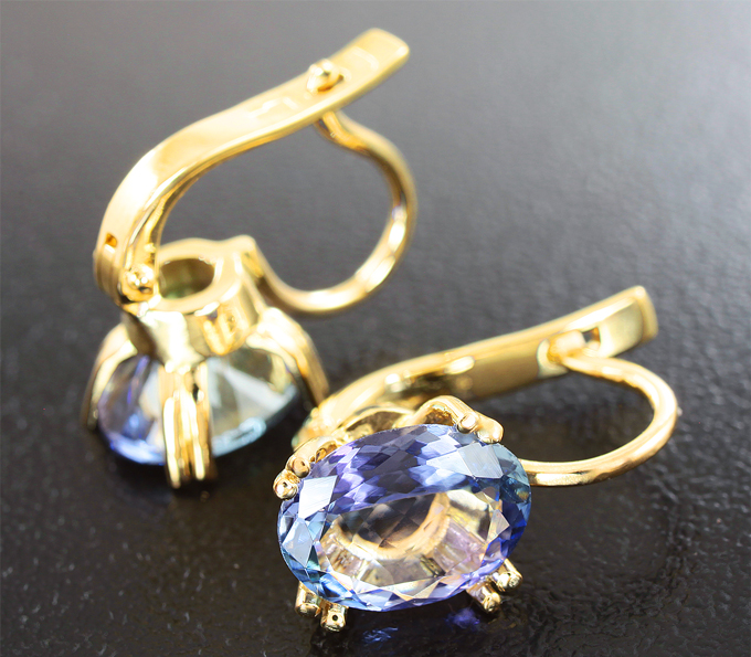 Вашему вниманию предлагаются серьги из желтого золота 585 пробы с танзанитами! Размеры серег с петлей 15 х 8 мм. Вес пары 3 г. Ниже приводятся ювелирные характеристики вставок.