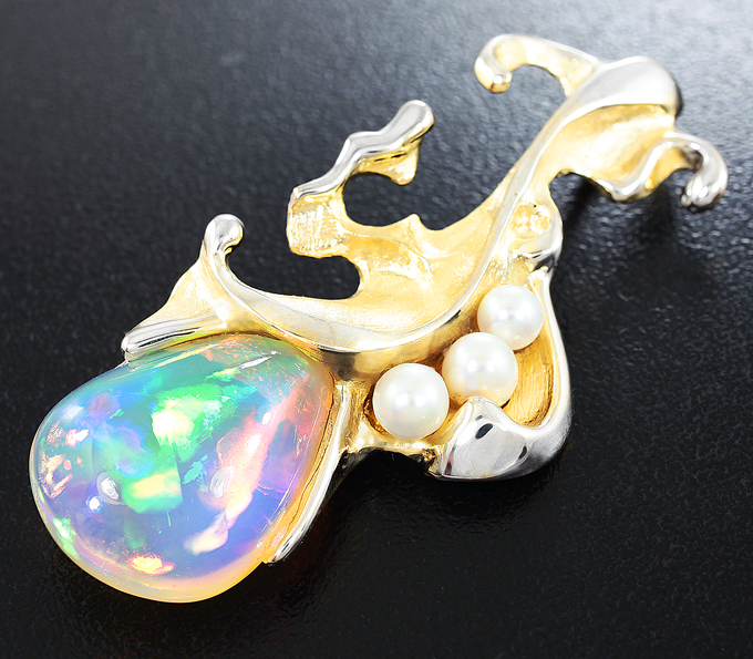 Кулон с кристаллическим эфиопским опалом и жемчугом