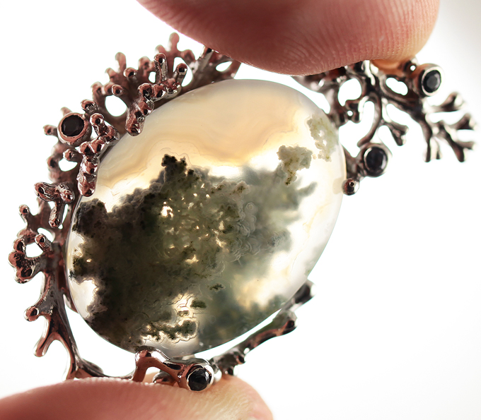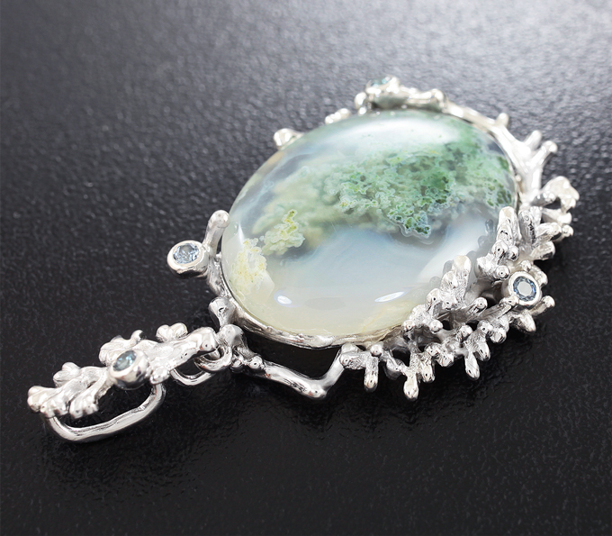 Кулон с дендритическим агатом и голубыми сапфирами