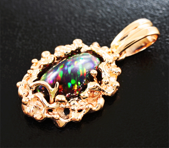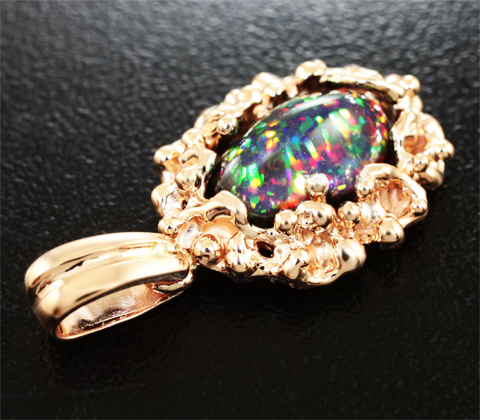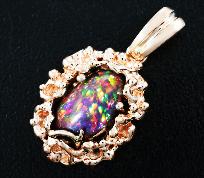 Кулон с фантастическим черным опалом