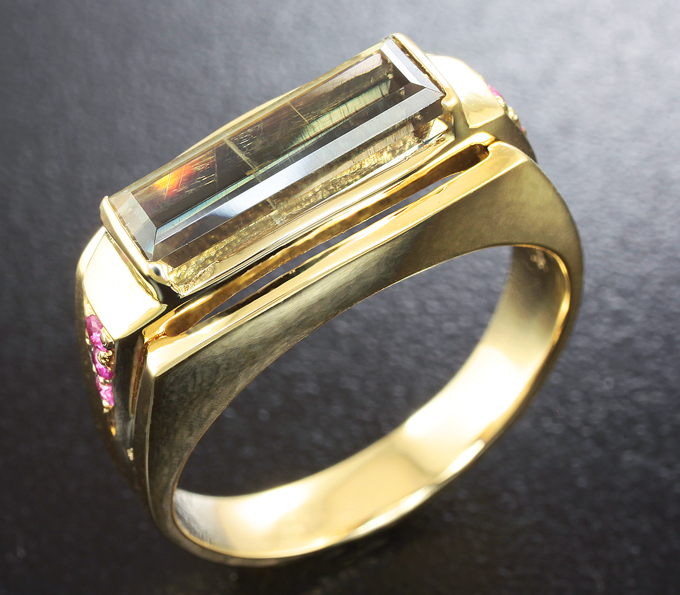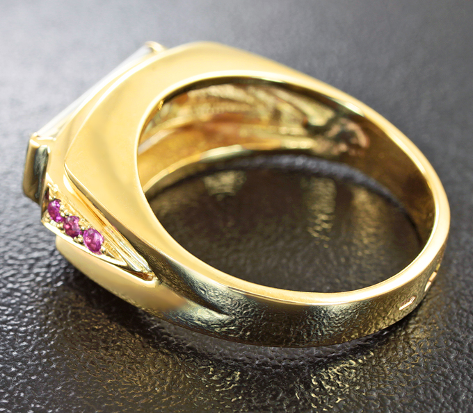 Вашему вниманию предлагается кольцо из желтого золота 585 пробы с диаспором и розовыми сапфирами! При смене освещения диаспор приобретает розовый нацвет. Диаметр дополнительной инкрустации 1,5 мм. Площадка 21 х 9 мм, высота 6 мм. Вес изделия 7,1 г. Размер 18,5. Ниже приводятся ювелирные характеристики диаспора.