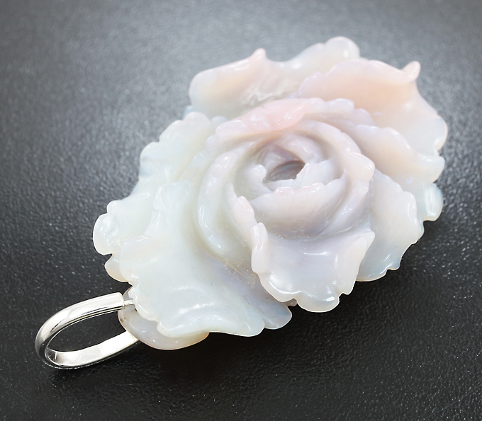 Вашему вниманию предлагается замечательный образец камнерезного искусства — камея-подвеска «Пион» из цельного халцедона с петлей из стерлингового серебра 925 пробы! Ручная работа! Не подвергалась окрашиванию. Размеры с петлей 70 х 40 х 15 мм. Вес 29 г.