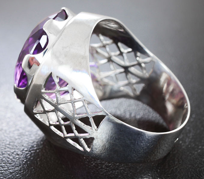 Вашему вниманию предлагается кольцо из стерлингового серебра (925 проба) c аметистом! Площадка 25 х 20 мм, высота 12 мм. Вес изделия 10,7 г. Размер 21. Ниже приводятся ювелирные характеристики вставки.