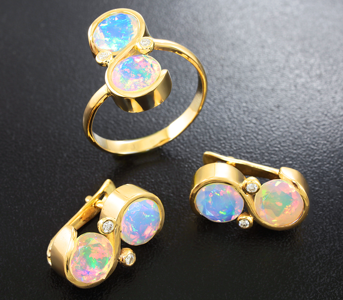Комплект с ограненными эфиопскими опалами и бриллиантами