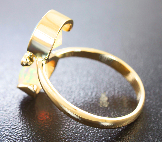 Вашему вниманию предлагается комплект (кольцо + серьги) из желтого золота 585 пробы с ограненными эфиопскими опалами и 6 бриллиантами! Основные цвета опалесценции: красный, желтый и зеленый. Диаметр дополнительной инкрустации 1,6 мм. Вес комплекта 10,4 г.