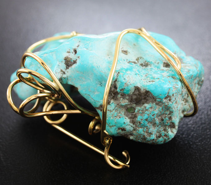 Вашему вниманию предлагается брошь/кулон из желтого золота 585 пробы с аризонской бирюзой сорта «Sleeping Beauty»! Площадка изделия 47 х 43 мм. Вес 35,8 г. Ниже приводятся ювелирные характеристики.