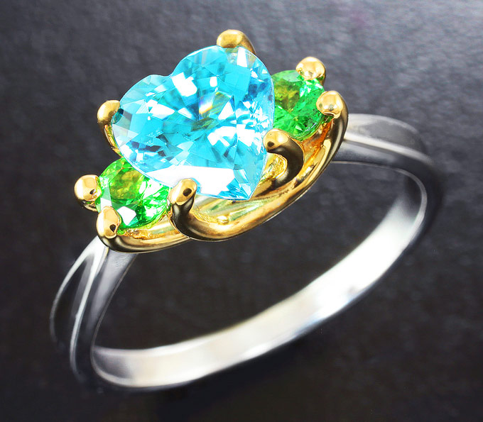 Вашему вниманию предлагается кольцо из стерлингового серебра (925 проба) c голубым цирконом и цаворитами гранатами! Изделие частично позолочено. Диаметр дополнительной инкрустации 3 мм. Площадка 12 х 7 мм, высота 7 мм. Вес изделия 2,3 г. Размер 16,5. Ниже приводятся ювелирные характеристики циркона.