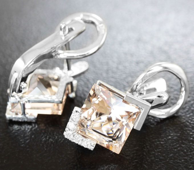 Вашему вниманию предлагаются серьги из белого золота 585 пробы с морганитом! Площадка серег 15 х 10 мм. Вес пары 3,8 г. Ниже приводятся ювелирные характеристики вставок.