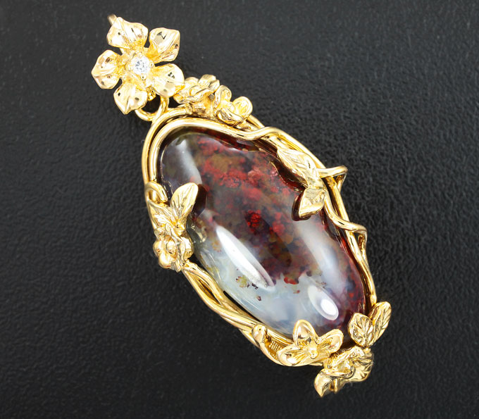 Вашему вниманию предлагается кулон из стерлингового серебра (925 проба) с дендритическим агатом и бесцветным цирконом! Изделие позолочено. Диаметр циркона 2 мм. Размеры кулона с петлей 45 х 21 мм. Вес изделия 8,4 г. Ниже приводятся ювелирные характеристики агата.