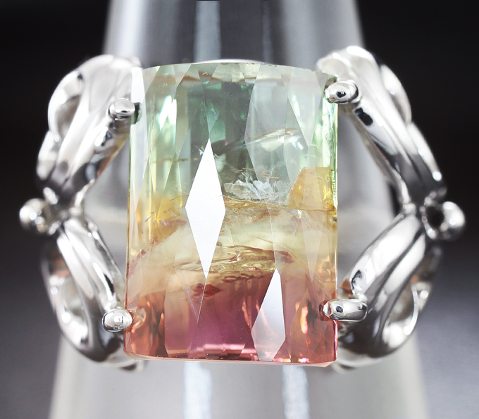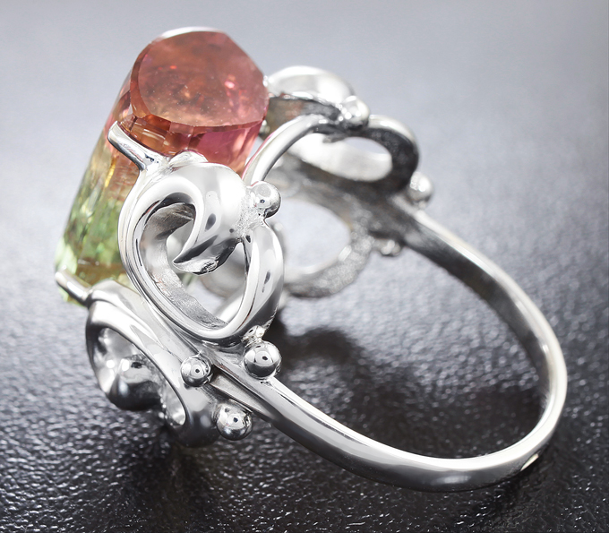 Вашему вниманию предлагается кольцо из стерлингового серебра (925 проба) c трехцветными турмалином! Площадка 23 х 16 мм, высота 10 мм. Вес изделия 8,1 г. Размер 18,5. Ниже приводятся ювелирные характеристики вставки.