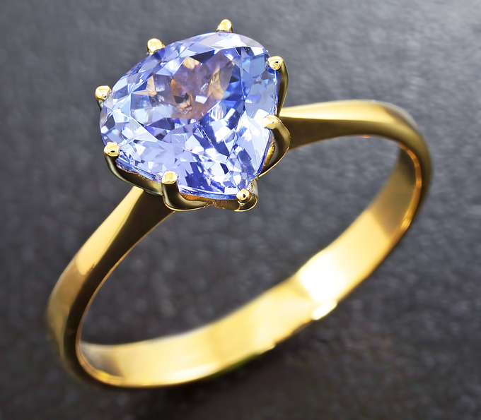 Вашему вниманию предлагается кольцо из желтого золота 585 пробы с танзанитом! Площадка 9 х 9 мм, высота 6 мм. Вес изделия 2,3 г. Размер 17,5. Ниже приводятся ювелирные характеристики вставки.