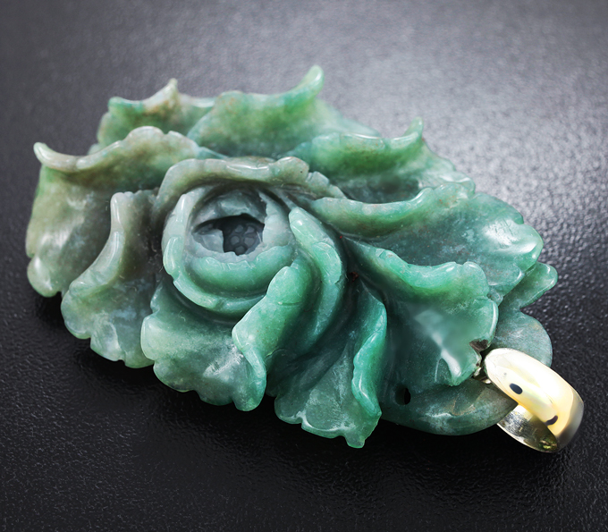 Камея-подвеска «Пион» из цельного зеленого агата