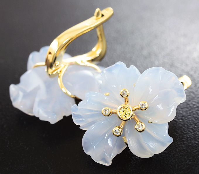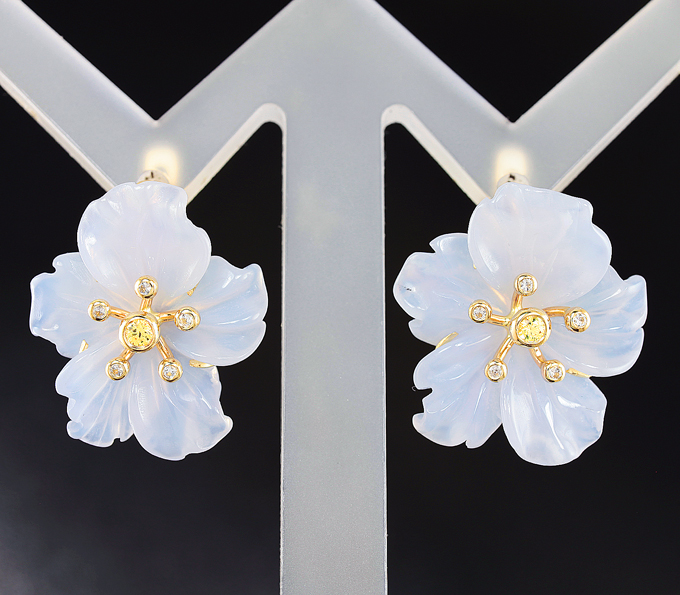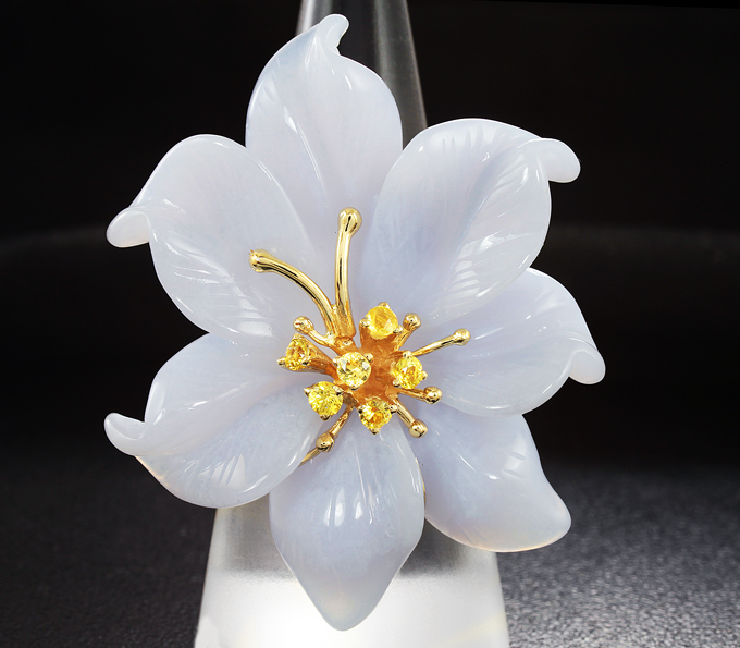 Комплект с резным халцедоном и желтыми сапфирами