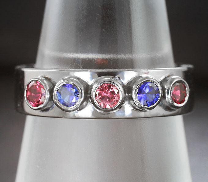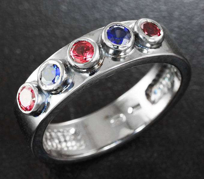 Кольцо c синими и красными сапфирами