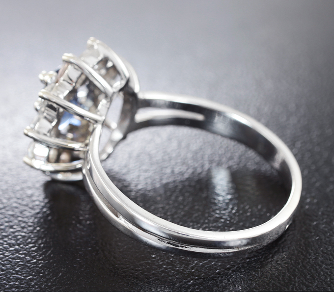 Вашему вниманию предлагается кольцо из белого золота 585 пробы с синим и бесцветными сапфирами! Диаметр дополнительной инкрустации 2,5 мм. Площадка 14 х 14 мм, высота 8 мм. Вес изделия 4,6 г. Размер 18,75. Ниже приводятся ювелирные характеристики синего сапфира.