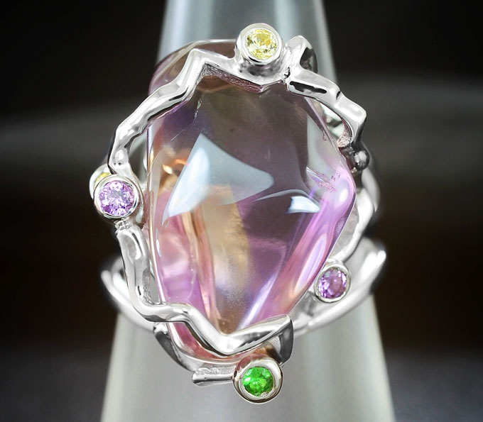 Кольцо c аметрином, аметистами, цаворитами гранатами и сапфирами