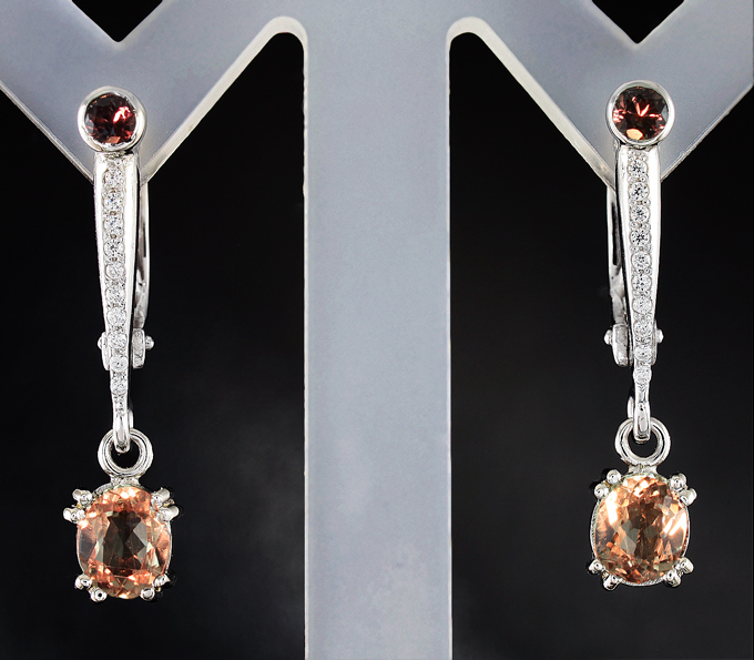 Серьги с гранатами со сменой цвета, диаспорами и бесцветными сапфирами