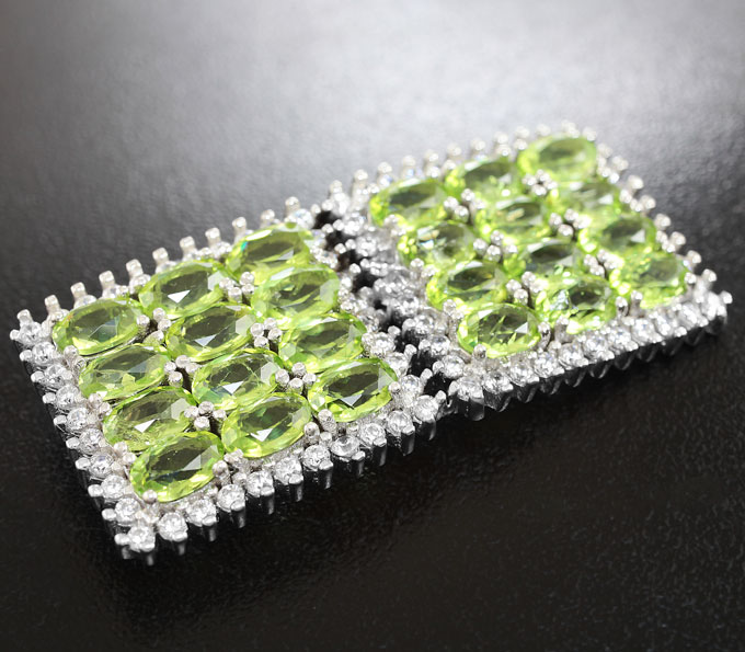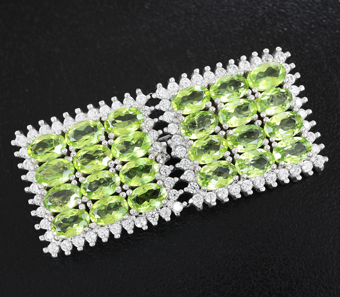 Брошь c перидотами и кубиком циркония
