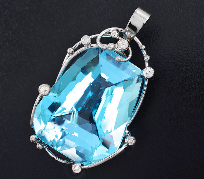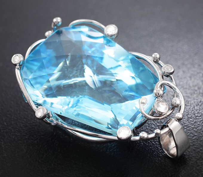 Вашему вниманию предлагается кулон из белого золота 585 пробы с топазом авторской огранки и лейкосапфирами! Диаметр дополнительной инкрустации 1,5 мм и 2 мм. Размеры кулона с петлей 43 х 27 мм. Вес изделия 17,3 г. Ниже приводятся ювелирные характеристики топаза.