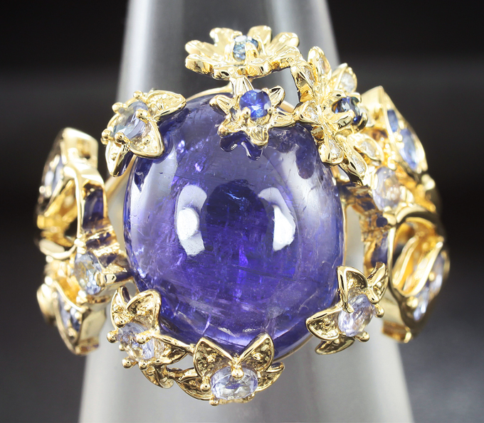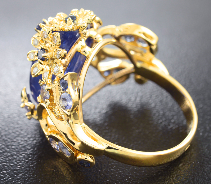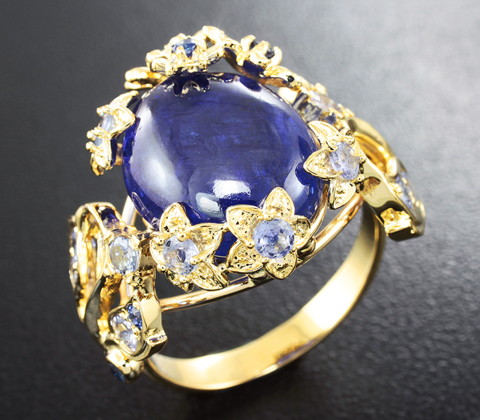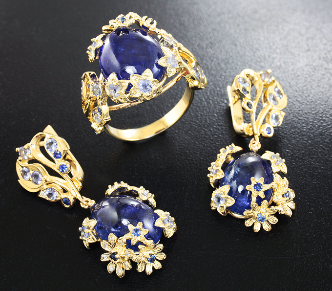 Комплект с кабошонами танзанитов, синими сапфирами и бриллиантами