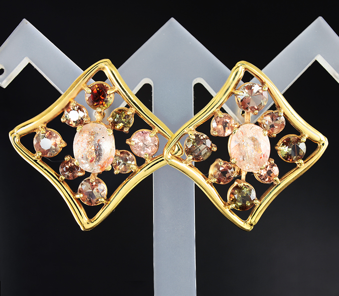 Серьги с солнечными камнями и андалузитами