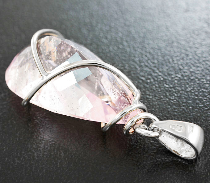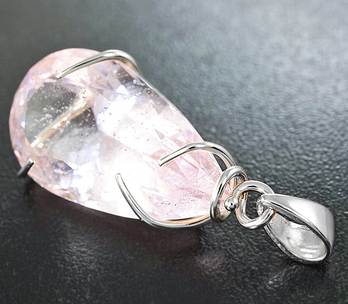 Вашему вниманию предлагается кулон из белого золота 585 пробы с крупным розовым морганитом! Размеры кулона с петлей 38 х 16 мм. Вес изделия 6,1 г. Ниже приводятся ювелирные характеристики вставки.