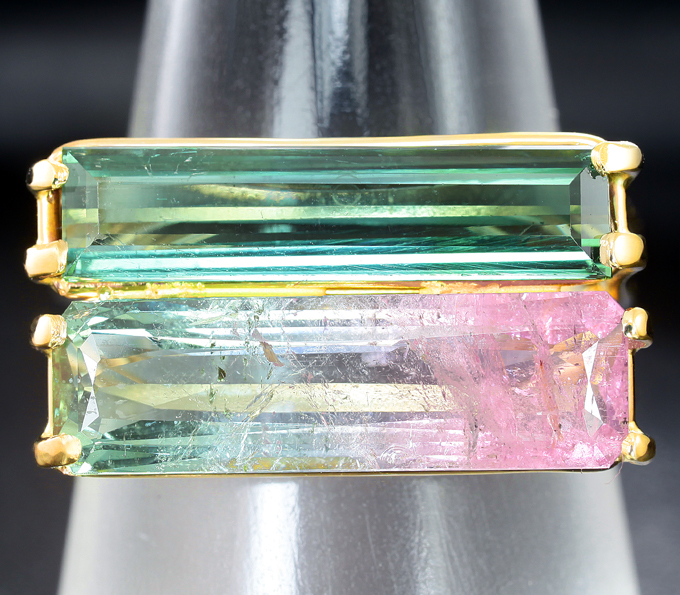 Вашему вниманию предлагается кольцо из желтого золота 585 пробы с турмалинами! Площадка 21 х 11 мм, высота 4 мм. Вес изделия 5,5 г. Размер 18,5. Ниже приводятся ювелирные характеристики вставок.